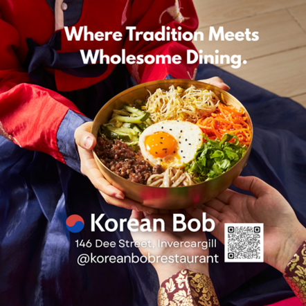 Joseph brings years of experience in international marketing at SIT Polytechnic, while Jackie has worked as a professional chef, most recently at The Langland Hotel in Invercargill. Together, we combine our skills to make Korean Bob not only a place to enjoy great food but also a “cultural library” — a space where anyone can experience the warmth, flavors, and traditions of Korea.